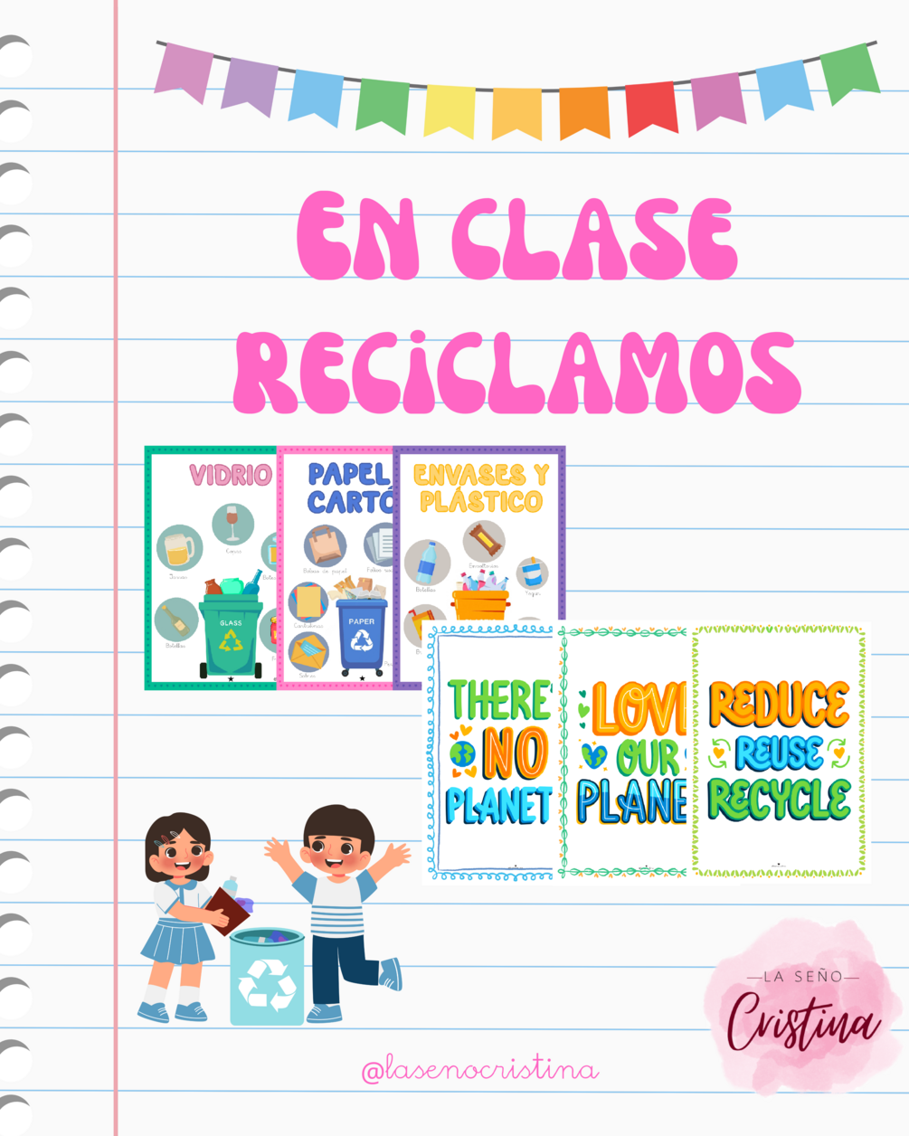 Os dejo este material para que podáis decorar vuestra clase y organizar los contenedores de papel, de plástico y de vidrio. Es una manera de incentivar a vuestros alumnos/as a reciclar y a reutilizar.